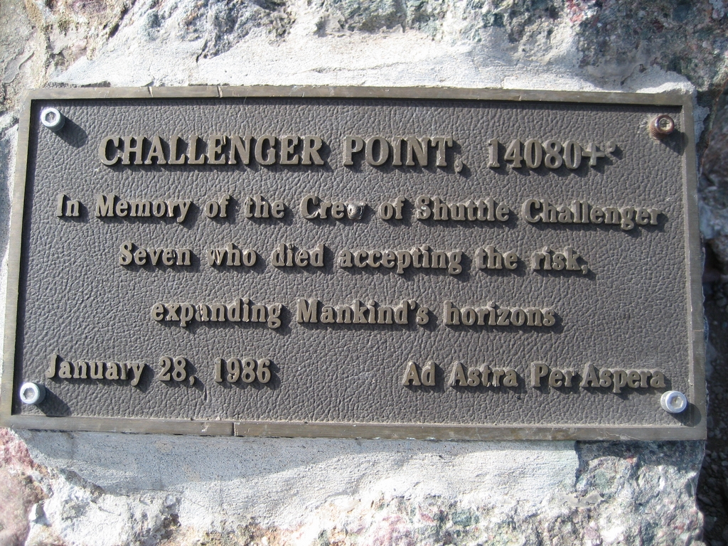 I hope the plaque lasts for a long time. Long after people who come to the summit, who remember the Challenger and her crew, have forgotten how it came to be there.