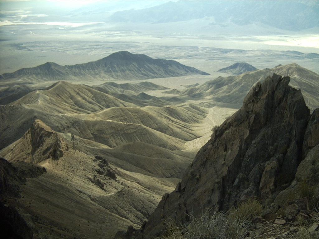 While on top I took for granted that I could see both Badwater and the -282' low point west of it, the lowest point in the western hemisphere, plus Mount Whitney, 14452', the highest point in the 48 states. Furthermore, they were not on opposite sides of me, as they would be from Telescope Peak or points north of there in the Panamint Range.