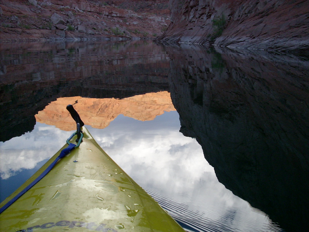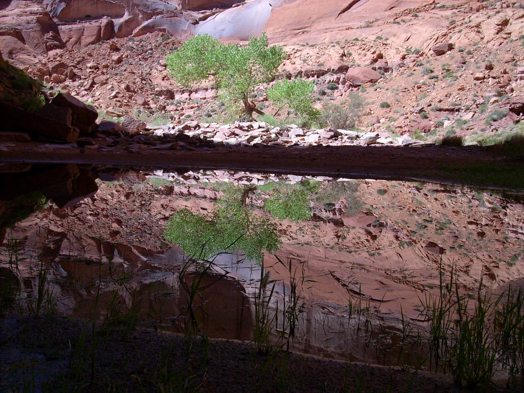 Along the way we moored for a time in "Eureka Canyon" near the mouth of the Escalante River. While the Yockeys toured up the latter, I kayaked 10 minutes to the end of the water in "Eureka" and walked about 10 more minutes into the lovely reflecting pool (smaller this year though) and cottonwood tree at the end of the canyon.