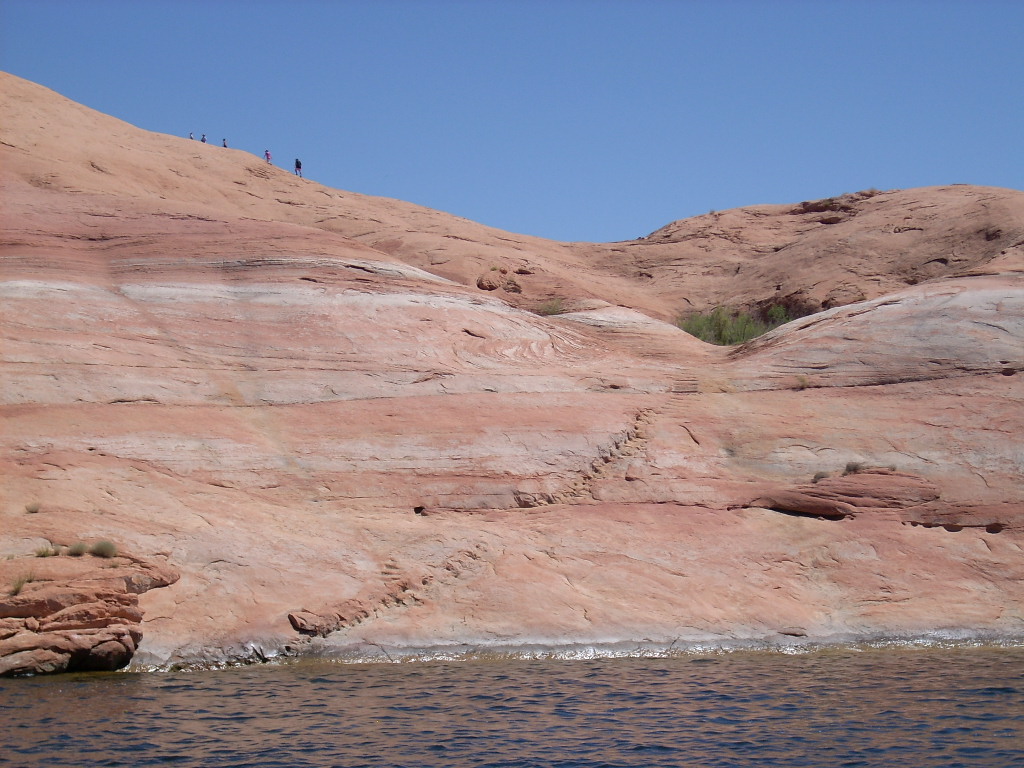 We all departed in the houseboat before 11 am headed for the marina. Along the way we nosed up to the rocks and dropped off some folks to hike up the hundred-year-old miner's steps near Lake Canyon. Later we later retrieved them without incident, which was becoming more and more rare (groan).